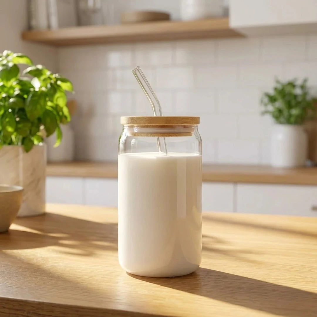 Oubliez le plastique qui se tache et absorbe les odeurs. Notre verre borosilicaté est pur, hygiénique et n'altère en rien le goût délicat de votre lait fait maison.